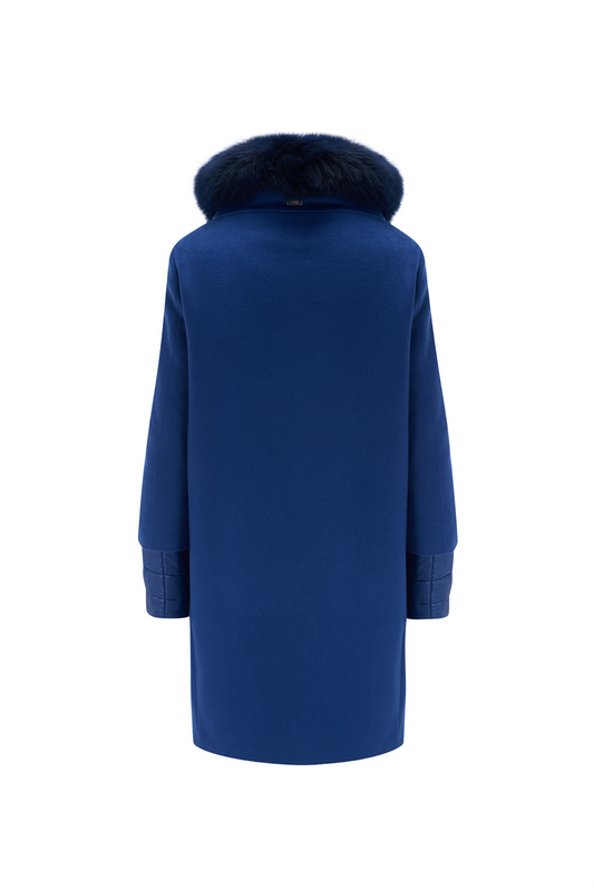 Herno Women’s Fur Trim Cashmere Coat Blue